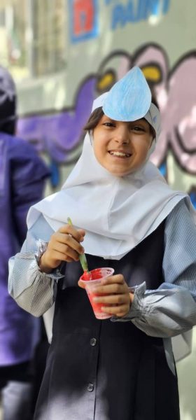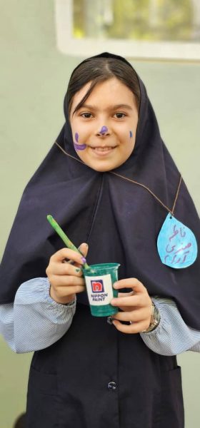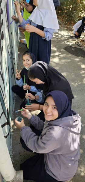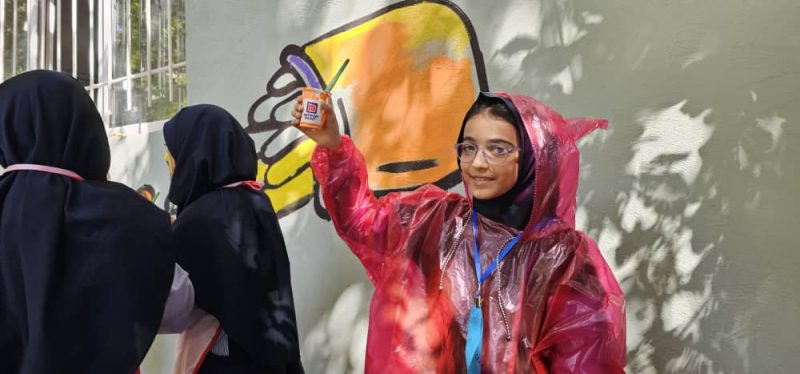 دیواری سفید در حیاط مدرسه، به تابلوئی رنگارنگ بدل شد؛ جایی که کودکان با رنگهای نیپون، قطرههای آب، درختان سبز و زمین آبی را تصویر کردند. هر کودک در پایان سهمی از رنگآمیزی داشت و جایزهای کوچک به یادگار گرفت.
